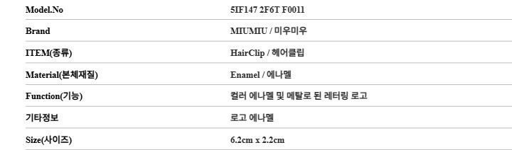미우미우 헤어핀 5IF147 2F6T F0011 로고 에나멜 여성헤어클립 당일발송