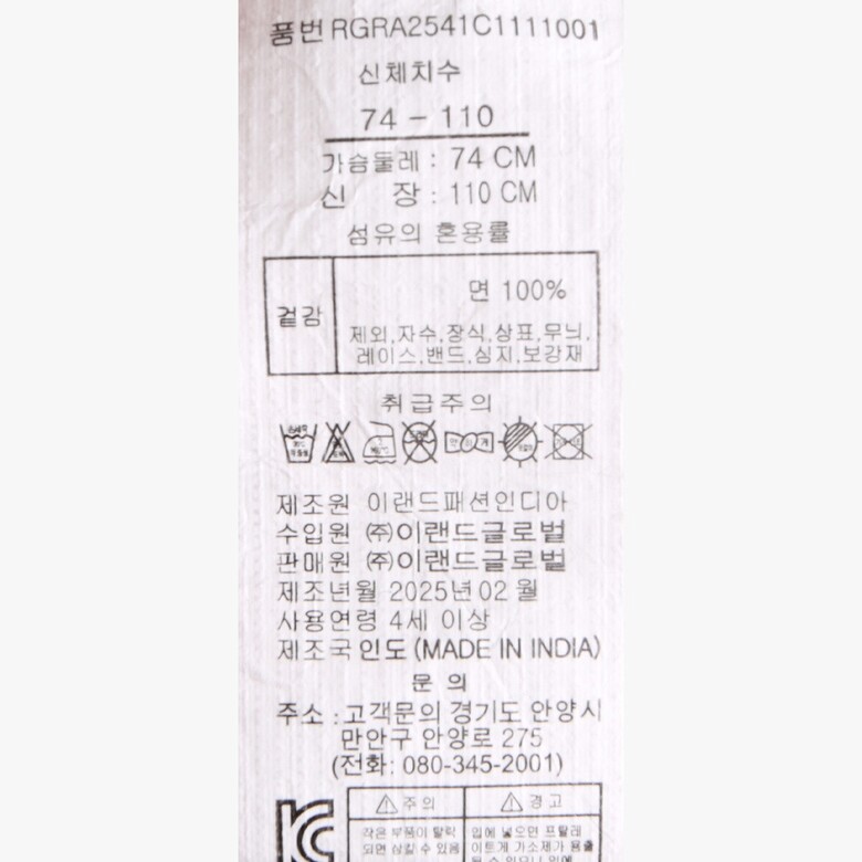 | 1. 제품 소재 (섬유의 조성 또는 혼용률을 백분율로 표시, 기능성인 경우 성적서 또는 허가서) | 상품상세참조 |