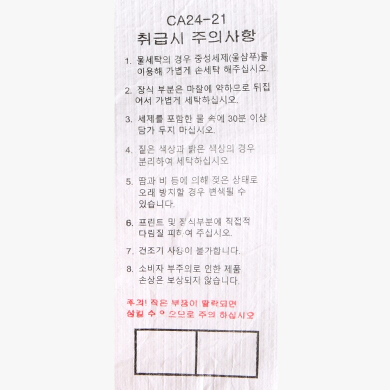 | 6. 세탁방법 및 취급시 주의사항 | 상품상세참조 |