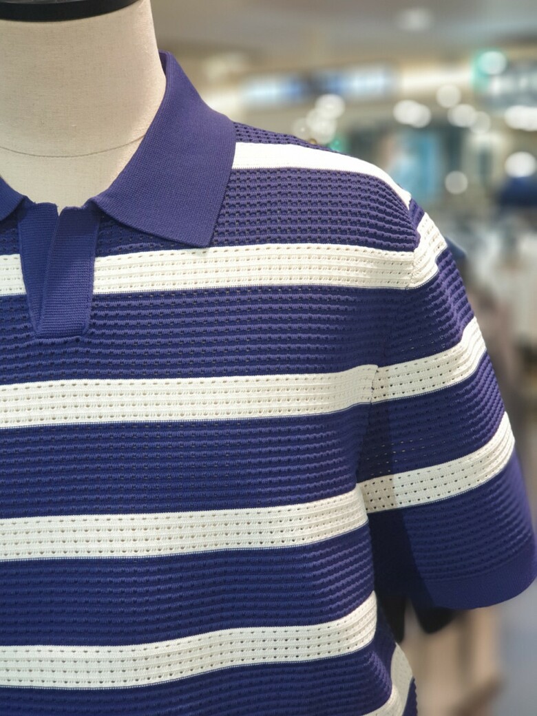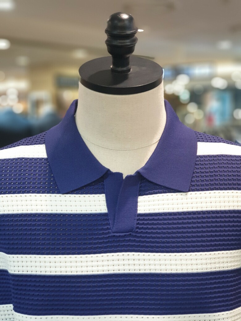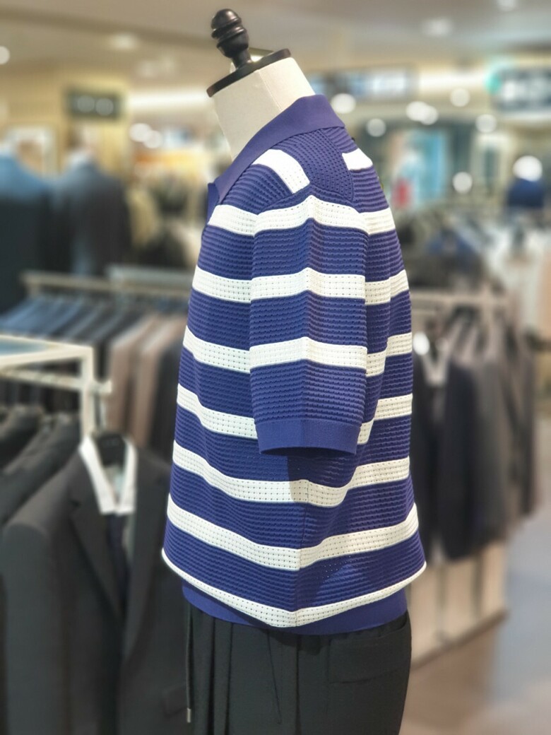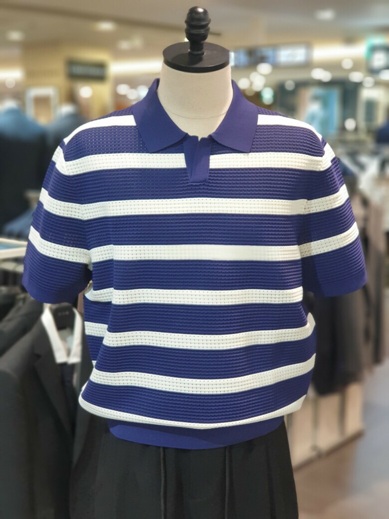 BON 25SS 네이비 아일렛 스트라이프 카라 캐주얼 니트 BNEMSW873NY