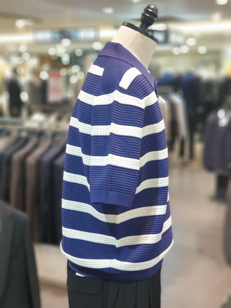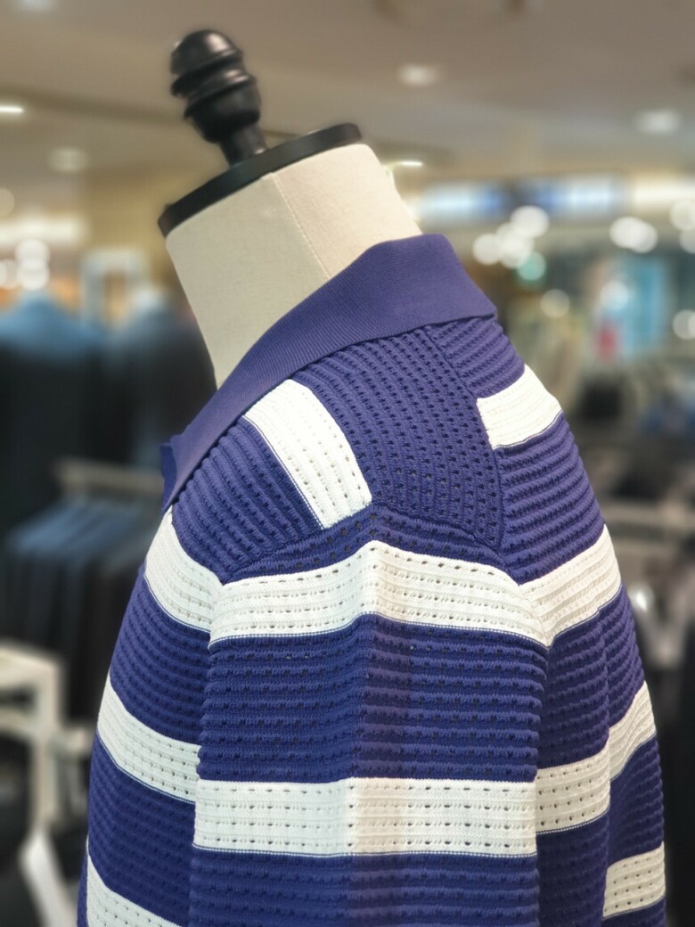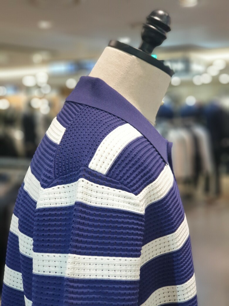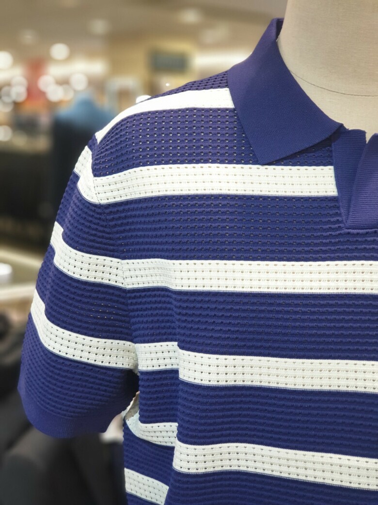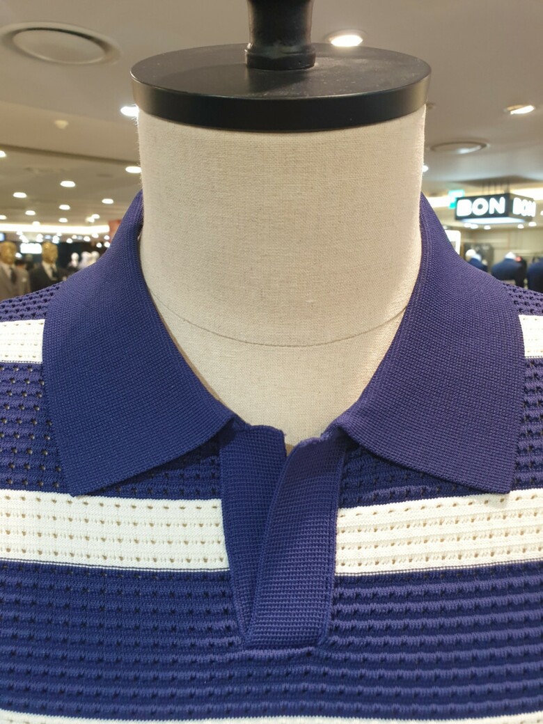 BON 25SS 네이비 아일렛 스트라이프 카라 캐주얼 니트 BNEMSW873NY