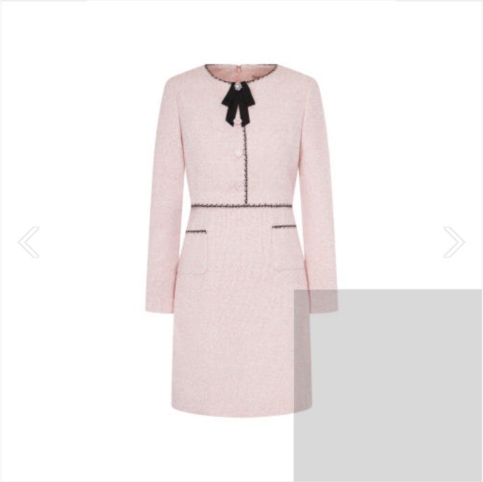 넥라인과 프론트 중심으로 배색라인 포인트를 준 원피스입니다.