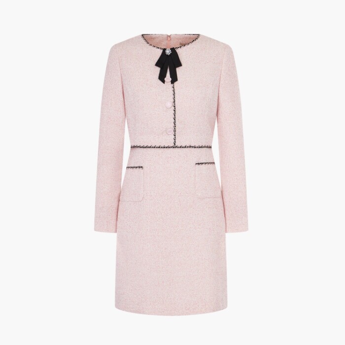 [케네스레이디] 라인 배색 리본 브로치 원피스 ECOPNI