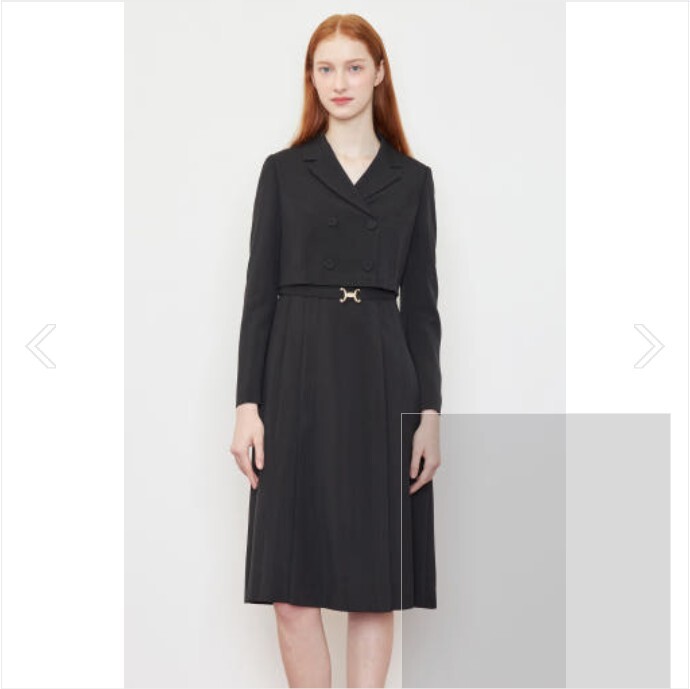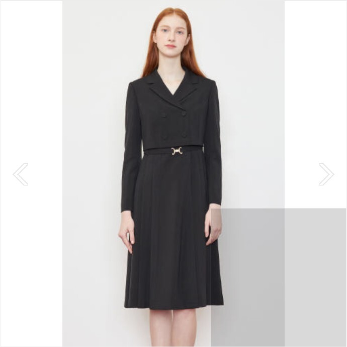 더블버튼 포인트와 벨트 참 장식으로 더욱 페미닌하며|*| 엘레강스한 무드를 자아냅니다.