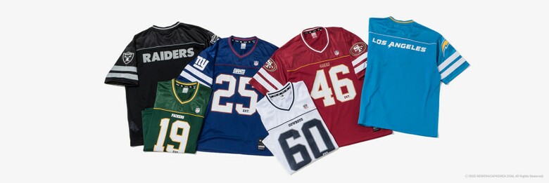 NFL 폴리에스터 티셔츠 컬렉션을 소개합니다. V넥 형태의 풋볼 저지 티셔츠로, NFL의 인기 구단 6개 팀의 스타일로 출시되었습니다. 전면부에는 각 구단의 창단년도를 배치하였으며, 소매는 구단의 로고 및 라인 디테일, 뉴에라의 플래그 로고로 디자인하였습니다. 또한 후면부에는 각 구단의 레터링을 배치하였습니다. 각 팀을 상징하는 컬러로 디자인 되었으며 폴리에스터 소재로 통기성과 편안한 착용감을 갖춘 NFL 폴리에스터 티셔츠 컬렉션, NFL의 공식 파트너인 뉴에라와 함께 지금 바로 만나보세요.