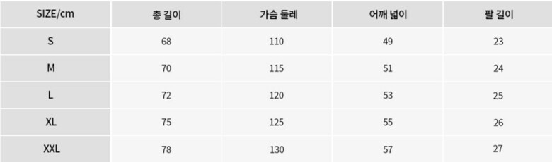 상세페이지 하단의 사이즈표를 참조 바랍니다.