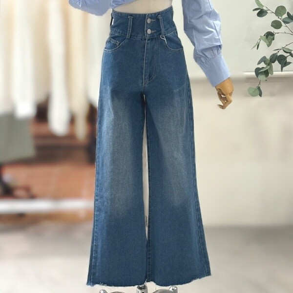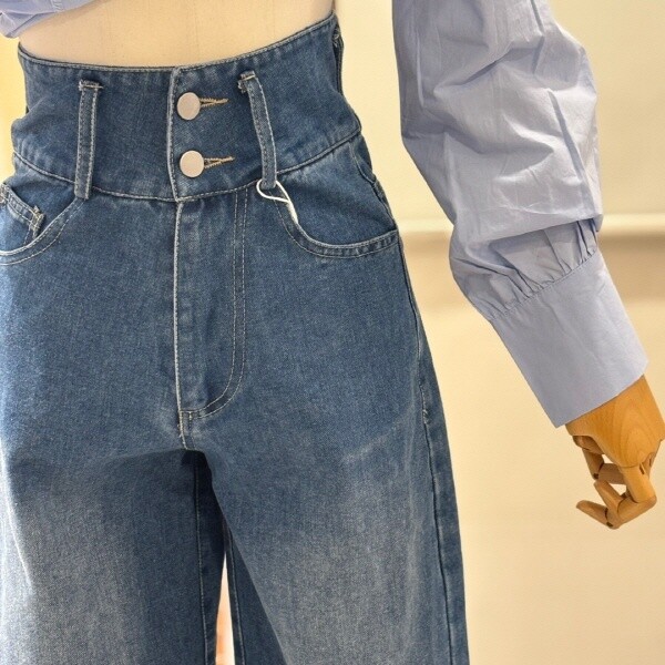 FTAPT1101_하이웨스트 투버튼 와이드데님팬츠