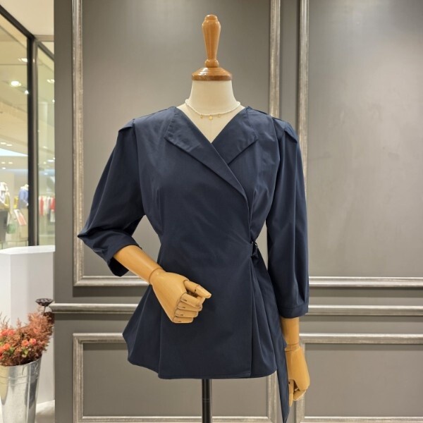 라인감이 돋보이는 랩스타일 블라우스입니다