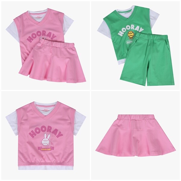 제품소재 : PI-조끼/반팔티[겉감]면100% 스커트[겉감1]면100% [겉감2]면92% 폴리우레탄8% GR-[겉감]면100%