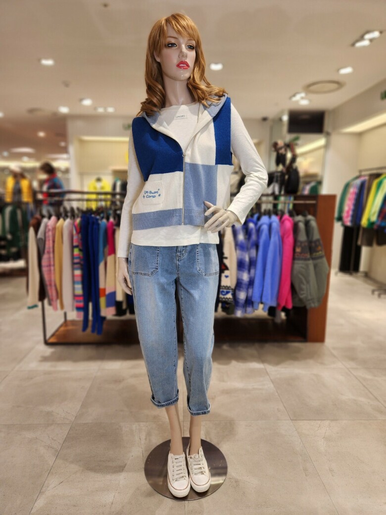 7.니트류는 자가드 프린트 기법으로 제작되어 앞부분에 예쁜 프린트처리가 되어 있습니다