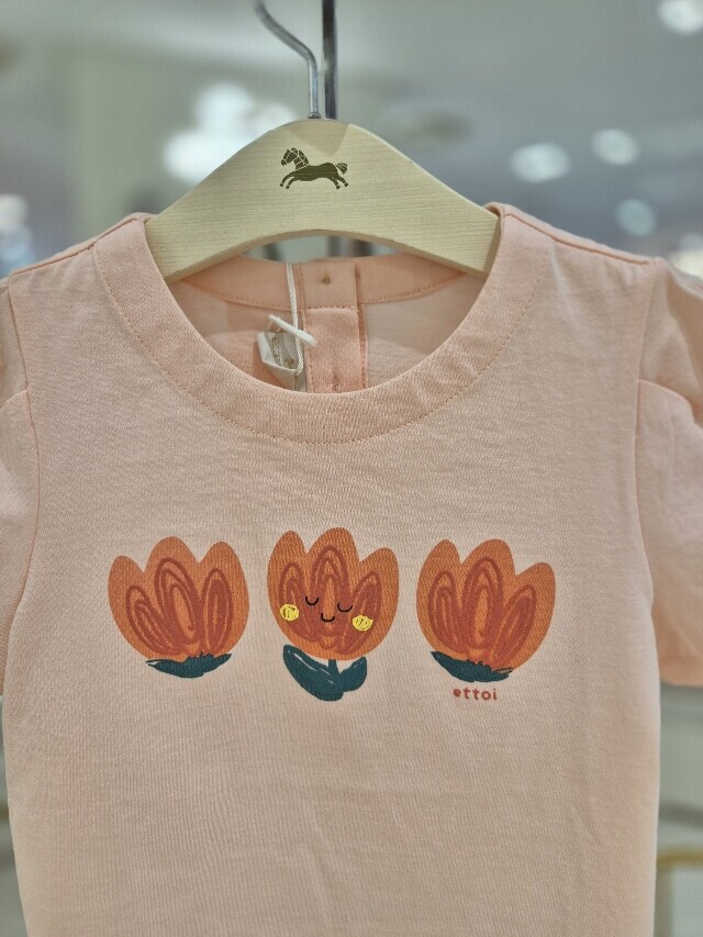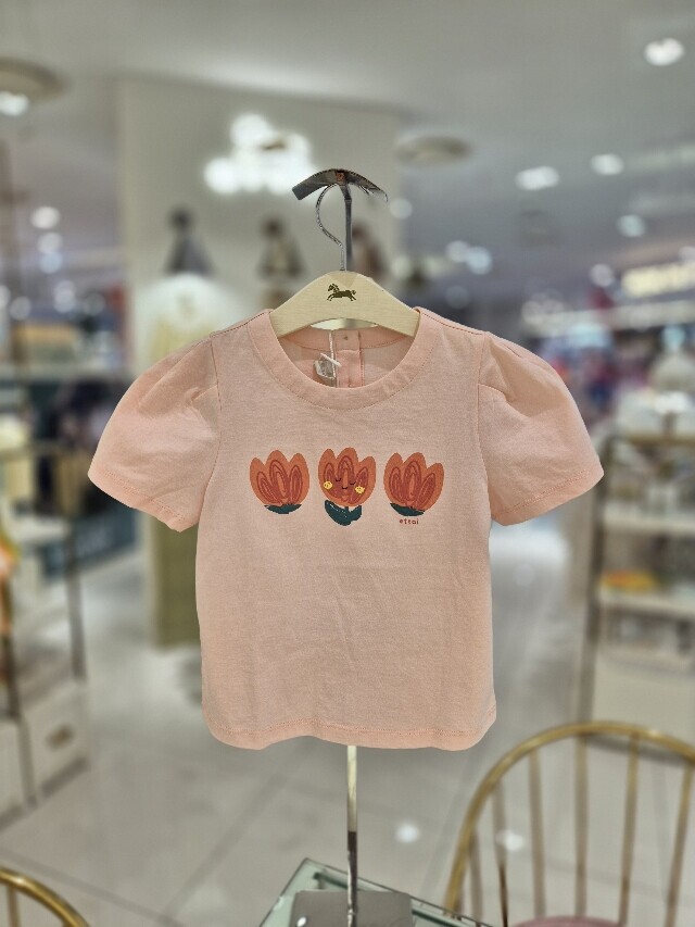 여성스러운 퍼프소매가 포인트인 여아 반팔티셔츠입니다