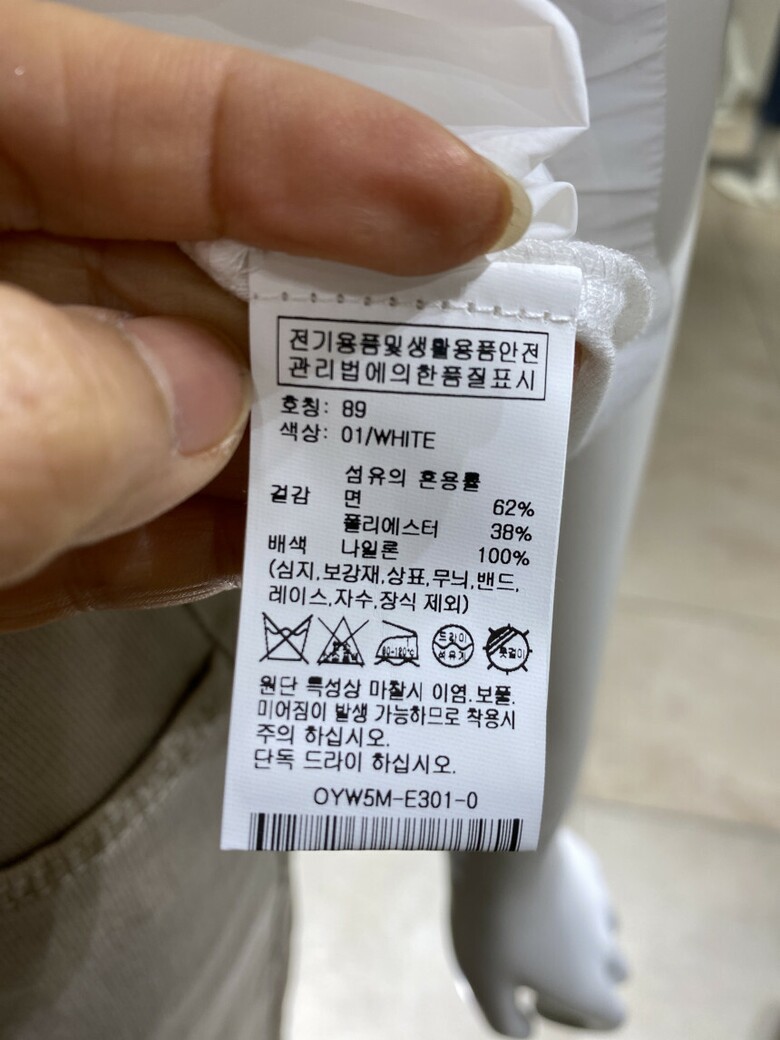 · 겉감 : 면 62%,폴리에스터 38%
