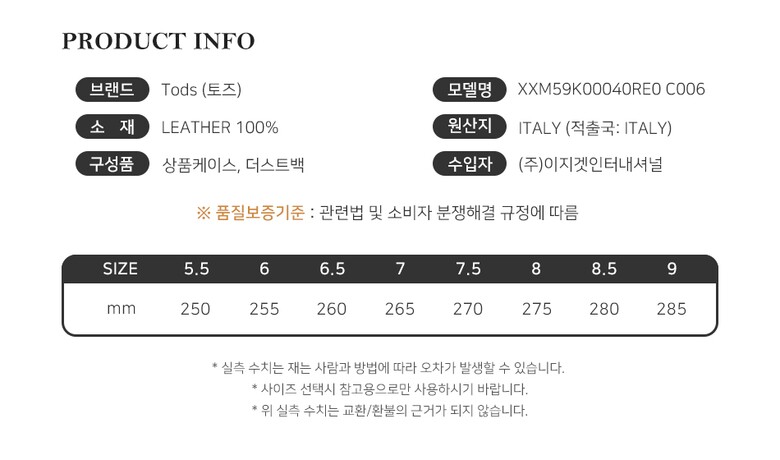 | 1. 제품 소재 (운동화인 경우에는 겉감, 안감을 구분하여 표시) | 상세페이지 참조 |