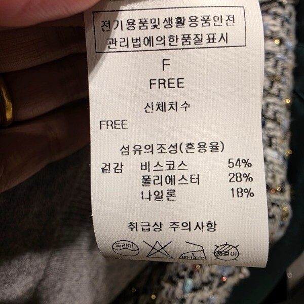 제품소재 : 비스코스 54% 폴리에스터 28% 나일론 18%