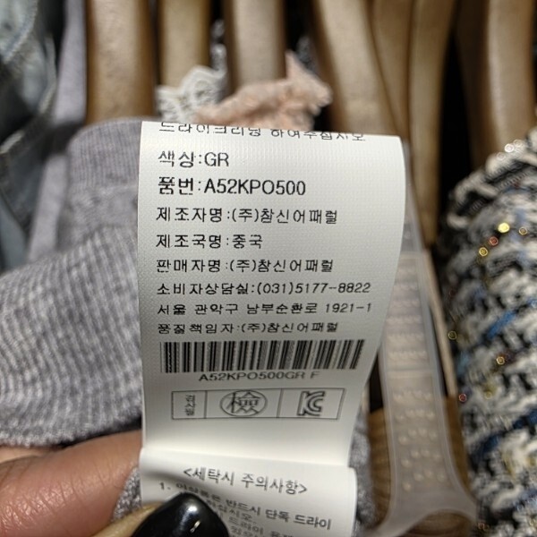 제조자 : (주)참신어패럴