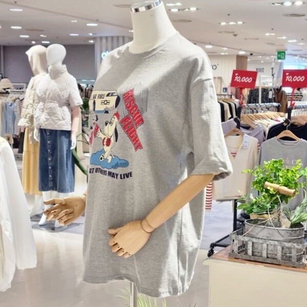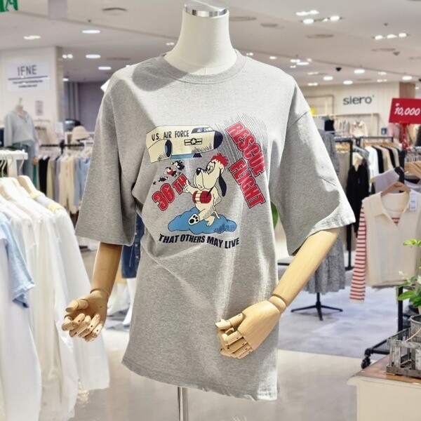 살짝 오버핏의 면티 라운드넥 힙선 덮는 기장감