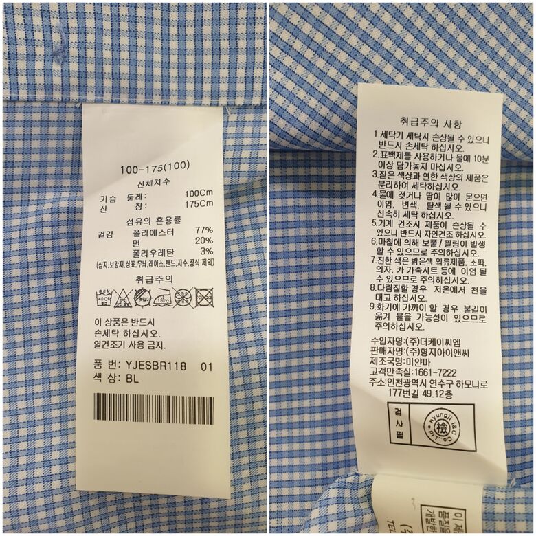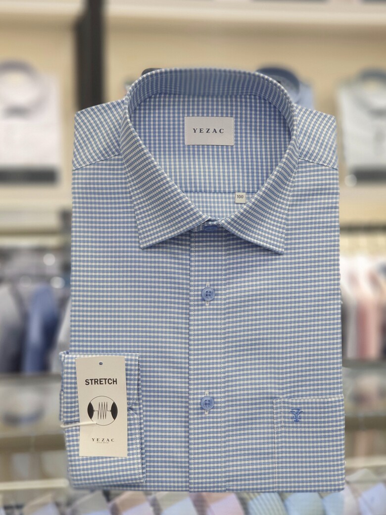 [예작셔츠] 면혼방 체크 사방스판 링클프리 일반핏셔츠 YJE SBR 118 BL