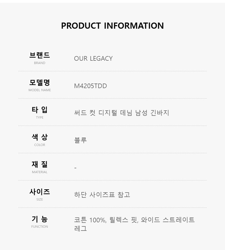 아워레가시 M4205TDD 써드 컷 디지털 데님 남성 긴바지