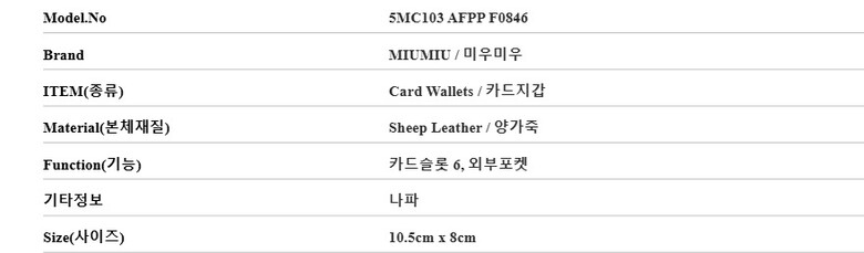 미우미우 5MC103 AFPP F0846 마테라쎄 나파 카드지갑