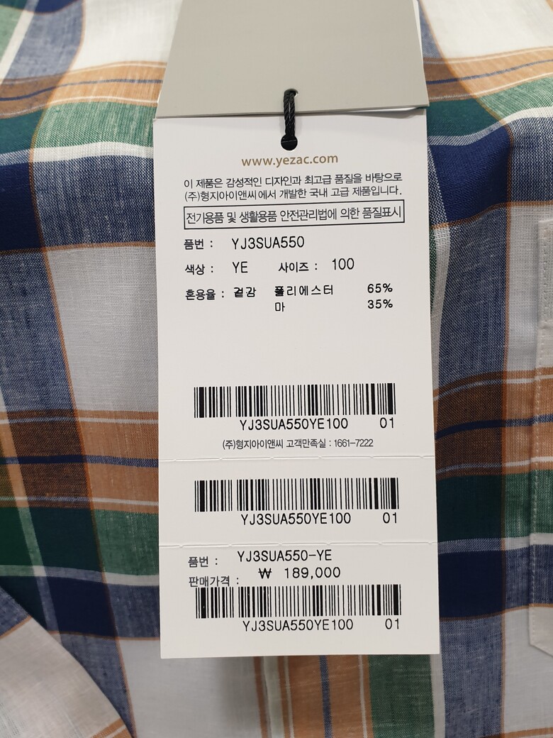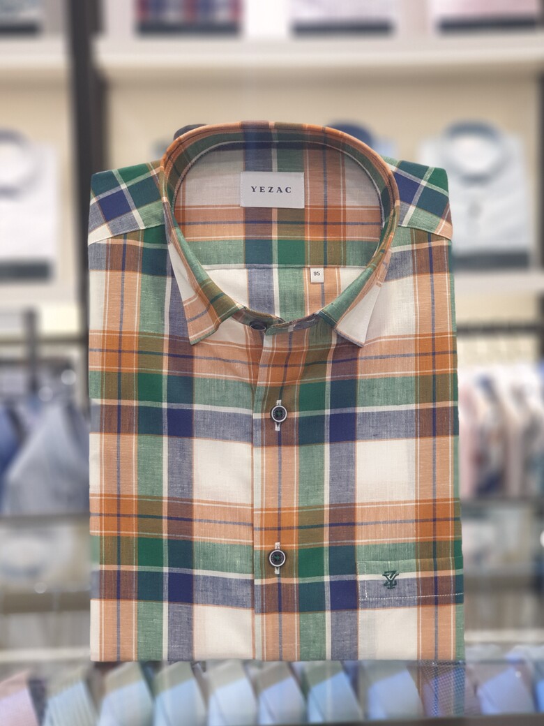 [예작셔츠] 린넨혼방 체크 일반핏남방 YJ3SUA550YE