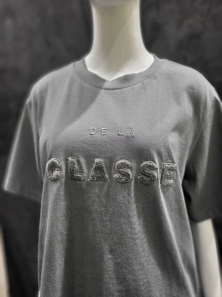 전면의 부클 자수로 캐주얼한 무드를 더했습니다.