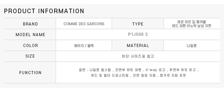 | 1. 제품 소재 (섬유의 조성 또는 혼용률을 백분율로 표시, 기능성인 경우 성적서 또는 허가서) | 상세페이지 참조 |