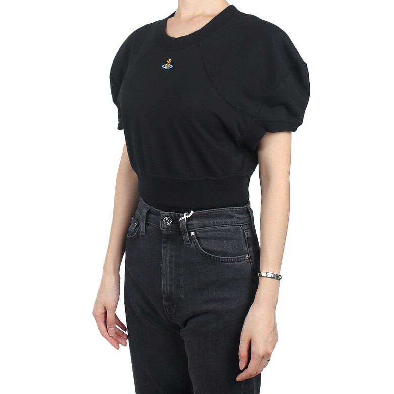 [명품] 비비안웨스트우드 여성 풋볼 크롭 반팔티 블랙 1G01000A J001M N401