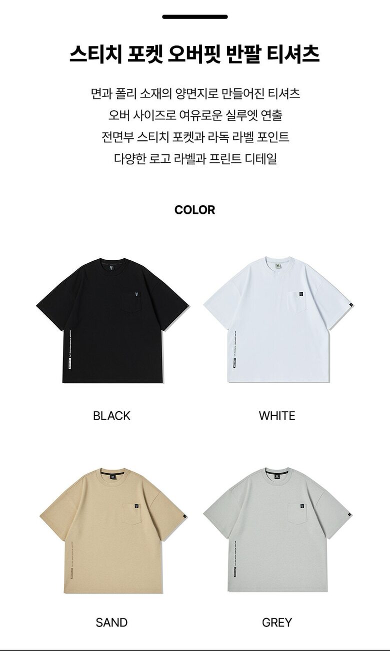 [라이프워크] 공용) 스티치 포켓 오버핏 반팔 티셔츠 (LW252TS116-40)