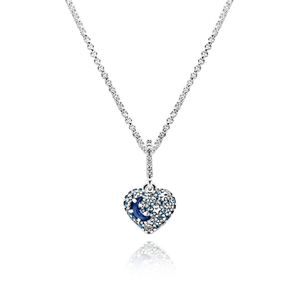 [명품] 판도라 399232C01 50cm 스파클링 블루 문 스타 하트 실버 목걸이