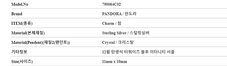 [명품] 판도라 790064C02 1 탄생석 터쿼이즈 블루 이터니티 서클 실버 참