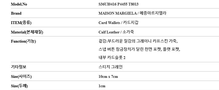 - #리본즈코리아 #S36UI0416P4455T8013 #[명품] #메종마르지엘라 #S36UI0416 #P4455 #T8013 #스티치 #그레인 #카드지갑 #여성 #지갑 #반지갑