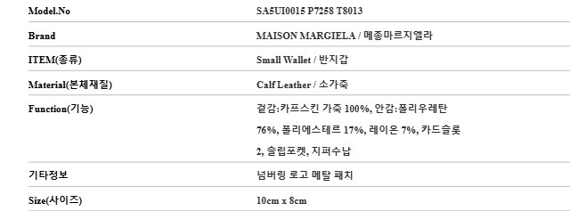 - #리본즈코리아 #SA5UI0015P7258T8013 #[명품] #메종마르지엘라 #넘버링 #메탈 #패치 #반지갑 #블랙 #SA5UI0015 #P7258 #T8013 #여성 #지갑