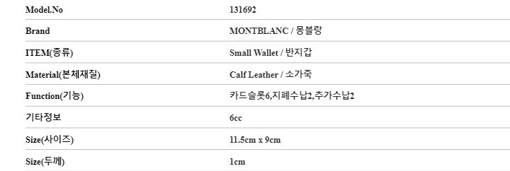 | 1. 종류 | 반지갑 |