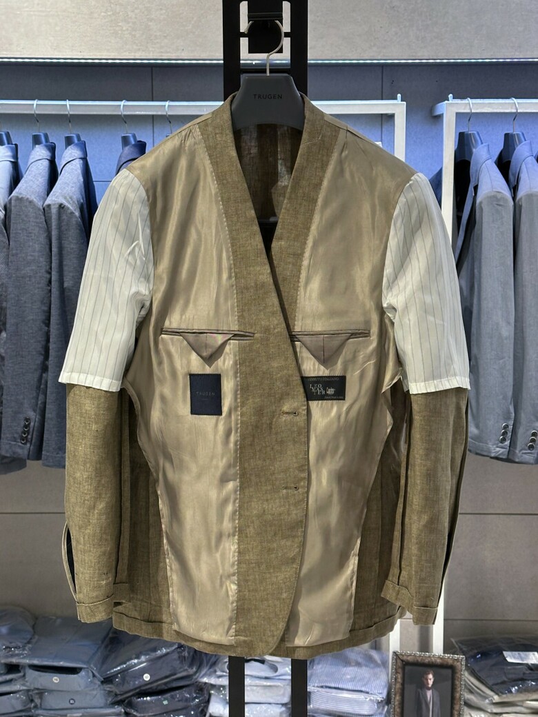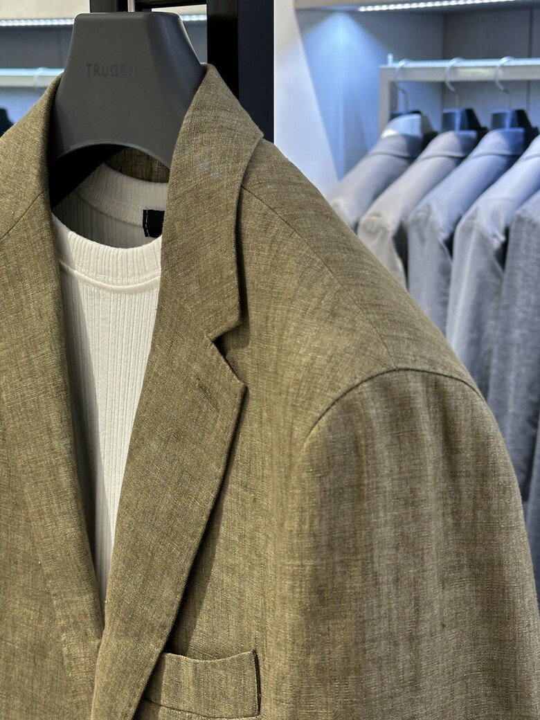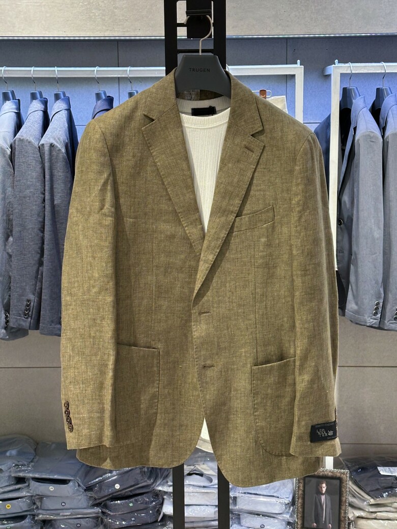 트루젠 한정수량사이즈 이태리수입 카키 린넨마 100% 남자 캐주얼 자켓 2222JK075074