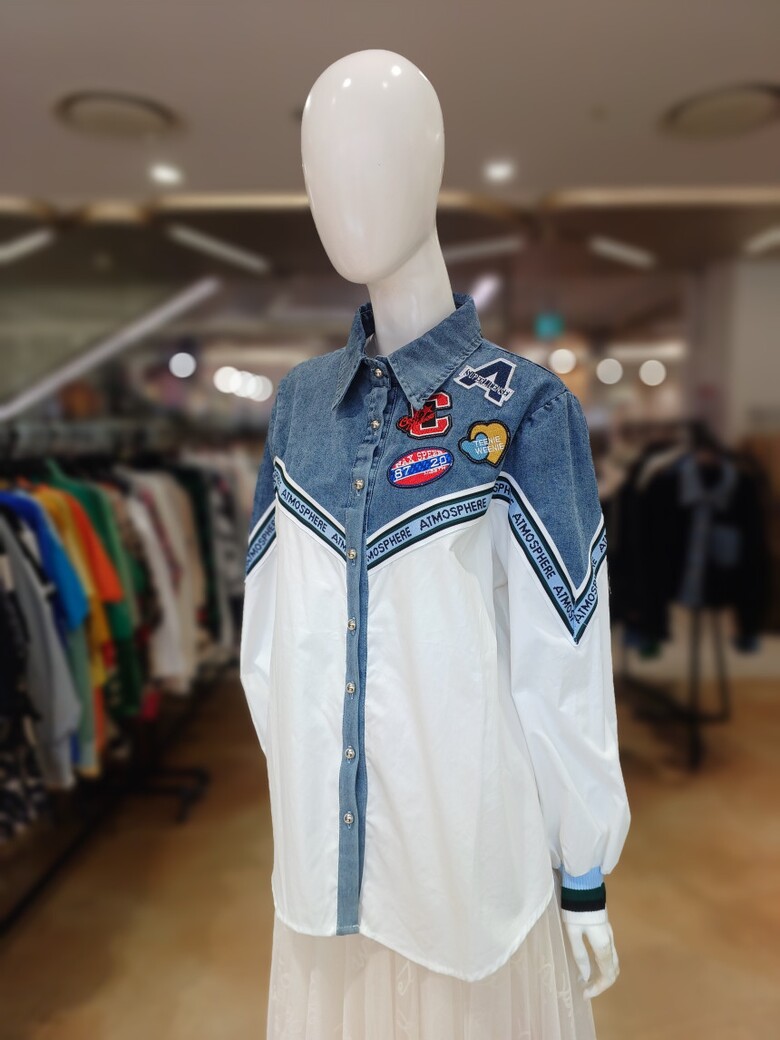 르니앤맥코이 데님 배색 와펜 셔츠 블라우스MM04BL706