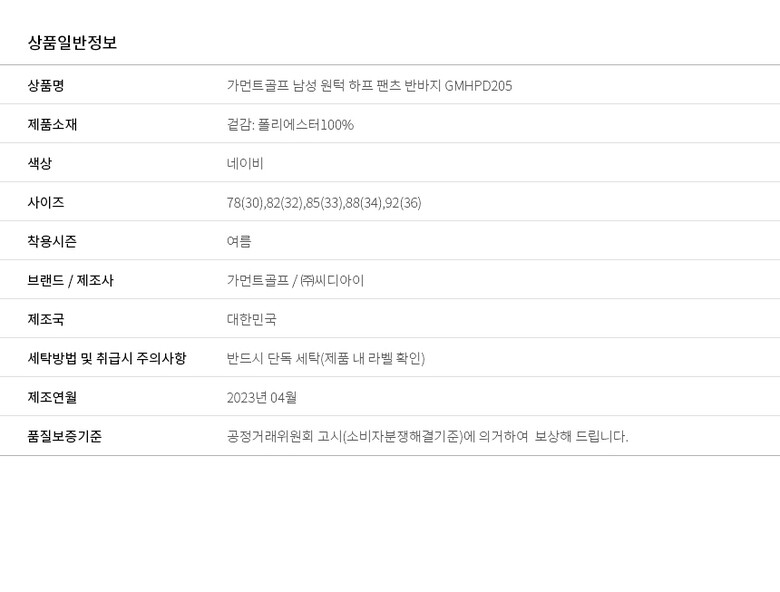 가먼트골프 남성 원턱 하프 팬츠 반바지 GMHPD205
