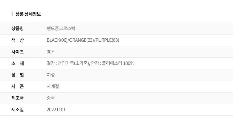 | 2. 소재 | 겉감 : 천연가죽(소가죽), 안감 : 폴리에스터 100% |