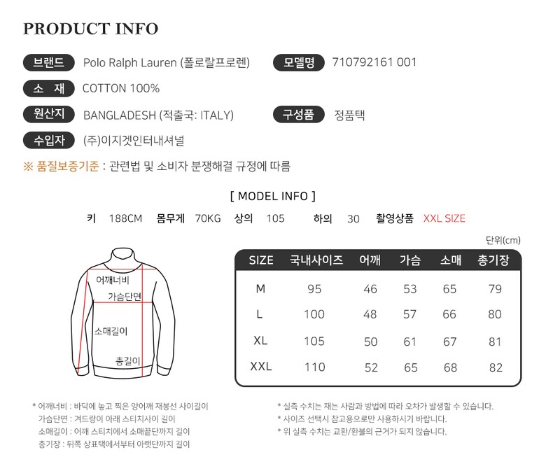 | 1. 제품 소재 (섬유의 조성 또는 혼용률을 백분율로 표시, 기능성인 경우 성적서 또는 허가서) | 상세페이지 참조 |