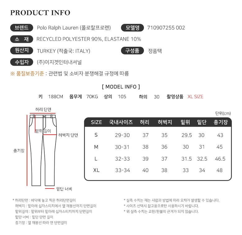 | 1. 제품 소재 (섬유의 조성 또는 혼용률을 백분율로 표시, 기능성인 경우 성적서 또는 허가서) | 상세페이지 참조 |