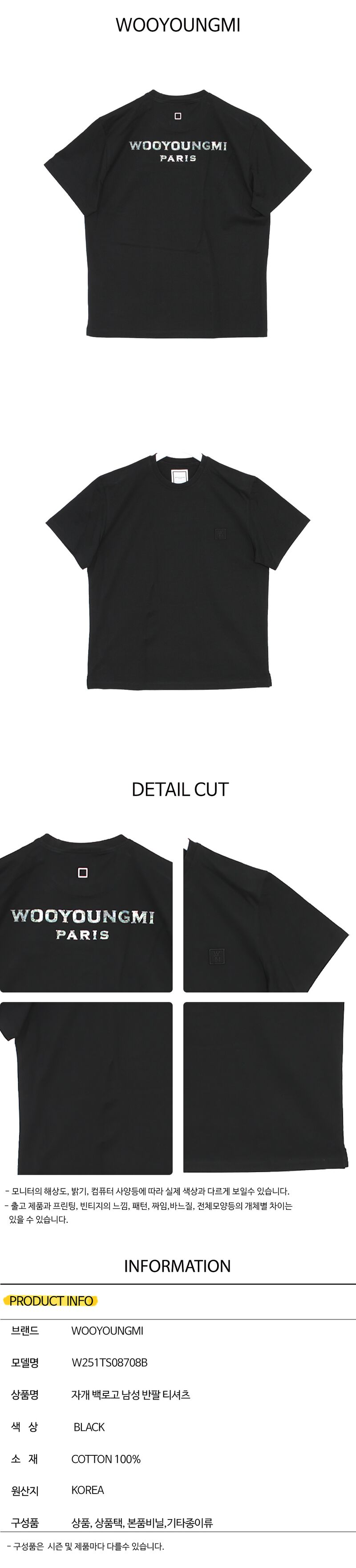 [명품] 우영미 25SS W251TS08708B 자개 백로고 남성 반팔 티셔츠