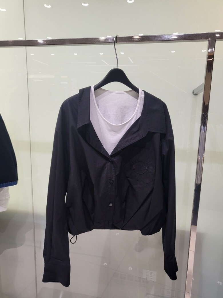 크롭 기장의 블라우스와 저지 탑이 믹스된 디자인으로,