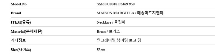 마르지엘라 목걸이 SM6UU0048 P6469 950 MM6 인그레이빙 넘버링 로고 링 남성목걸이 여성목걸이 당일발송