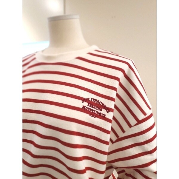KKTSP311RE_자수 스트라이프 티셔츠 레드