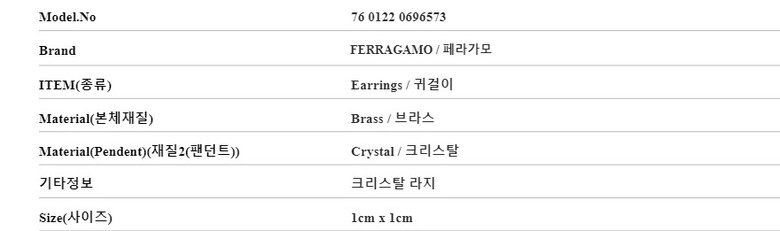 #리본즈코리아 #7601220696573 #[명품] #페라가모 #76 #0122 #0696573 #760122 #696573 #간치니 #크리스탈 #라지 #귀걸이 #여성 #시계/액세서리 #귀걸이/피어싱