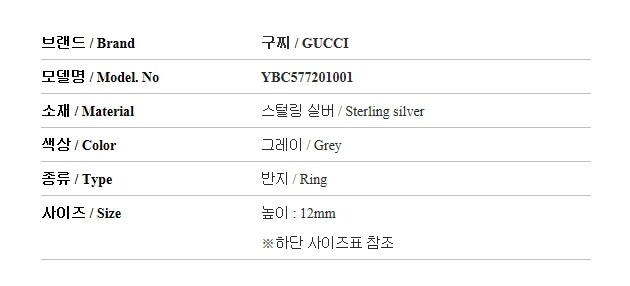 [명품] 구찌 YBC577201001 577201 J8400 0811 마몬트 GG 스네이크 12mm 실버 반지