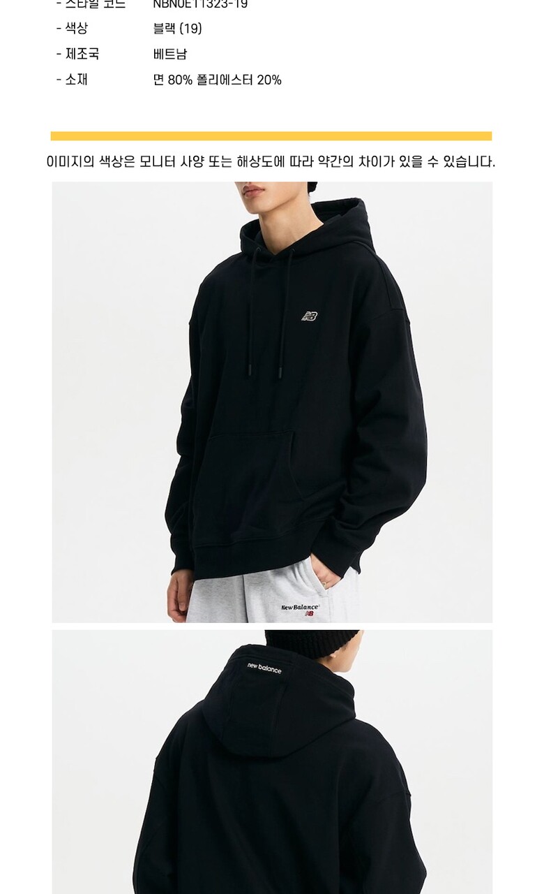 뉴발란스 공용 ESS 클래식 로고 세미오버핏 후드티 NBN0E11323-19