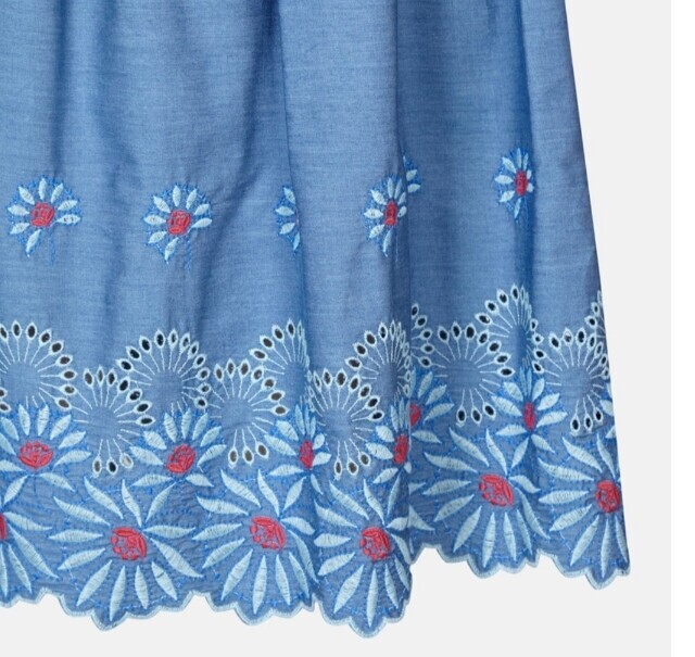 부드러운 천이고 길이가 생각보다 길어요~ 날씬하게 입으면 더 이쁘겠네요. 색감이랑 자수가 고급스러워요~~