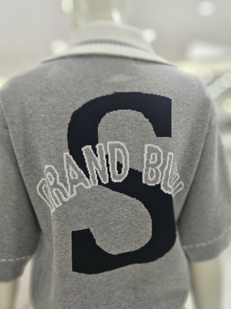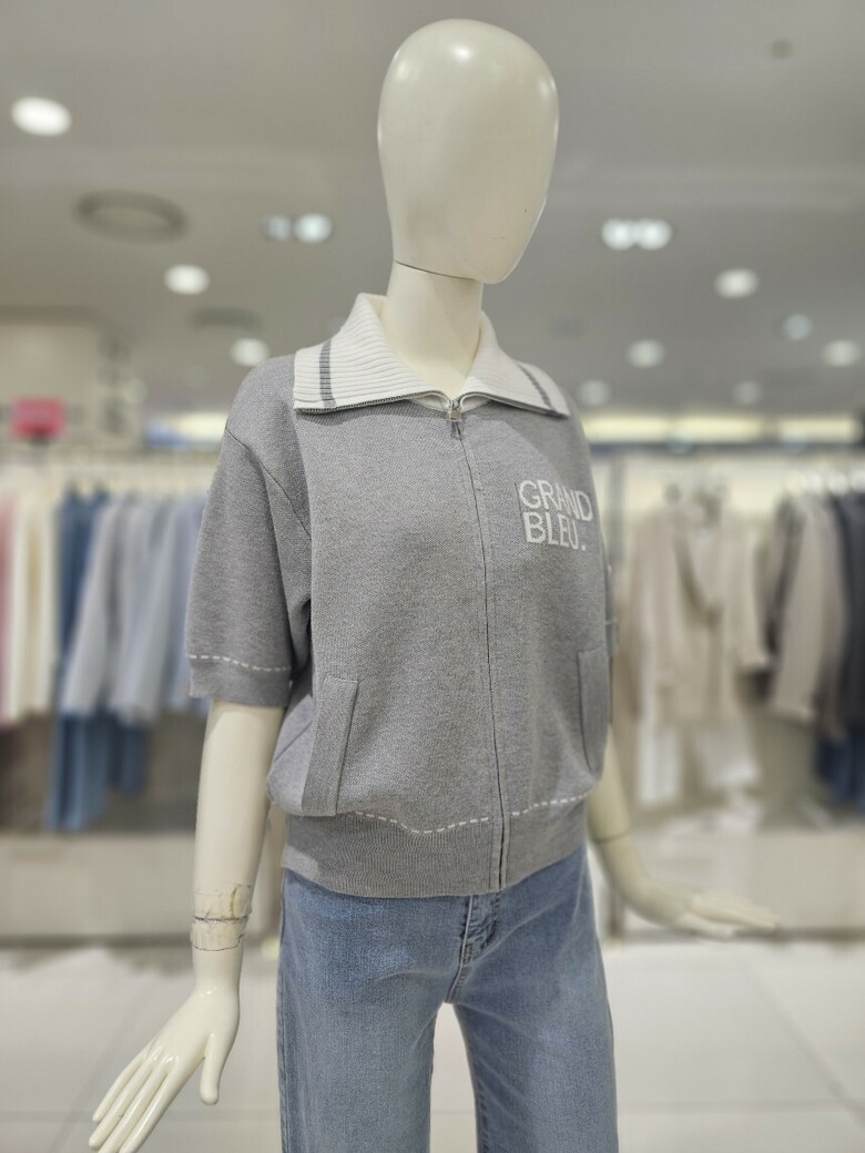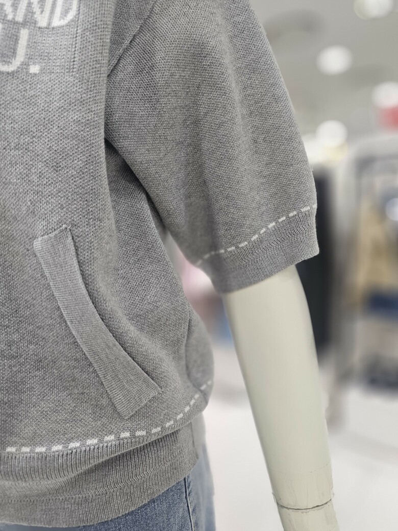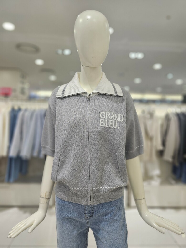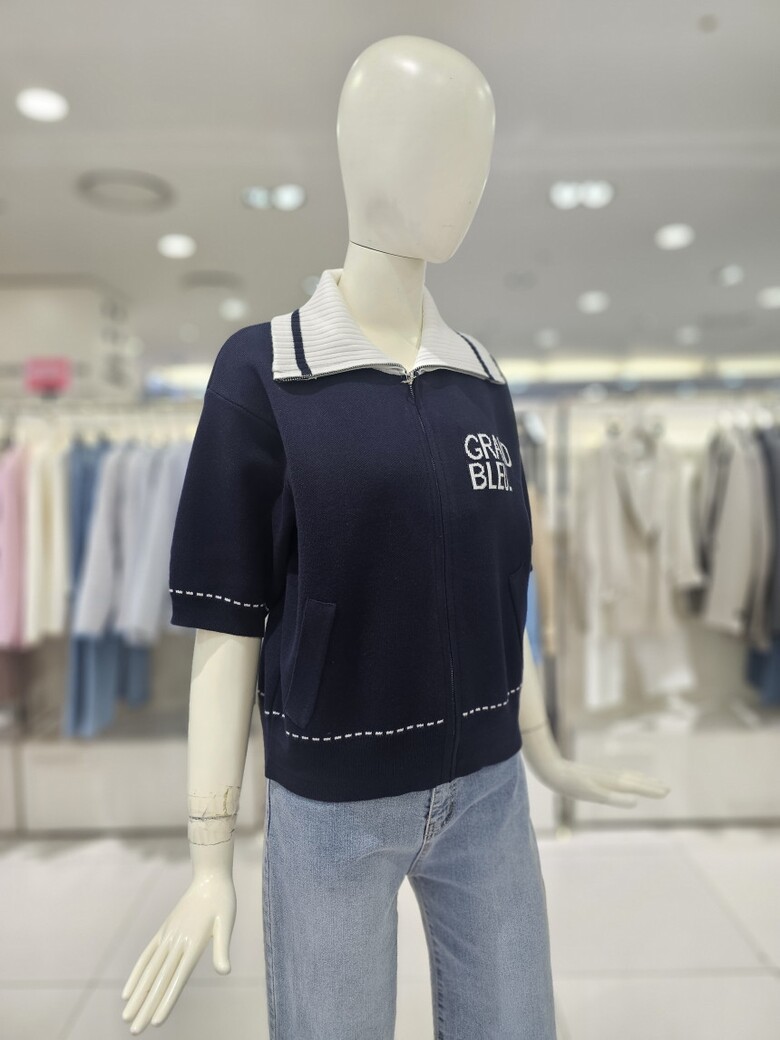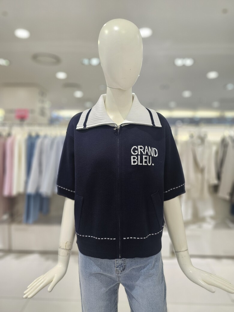 더 틸버리 배색카라 백레터링니트반팔 가디건TR4M1CD51W