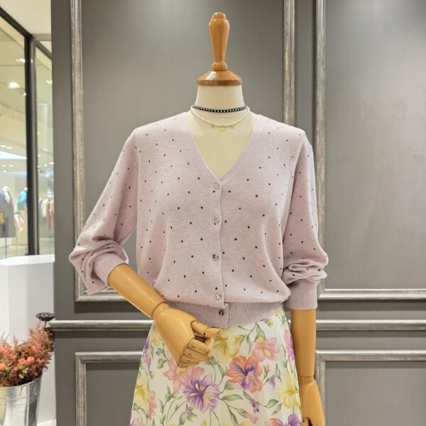 은은한 잔도트 패턴 디자인의 가디건입니다