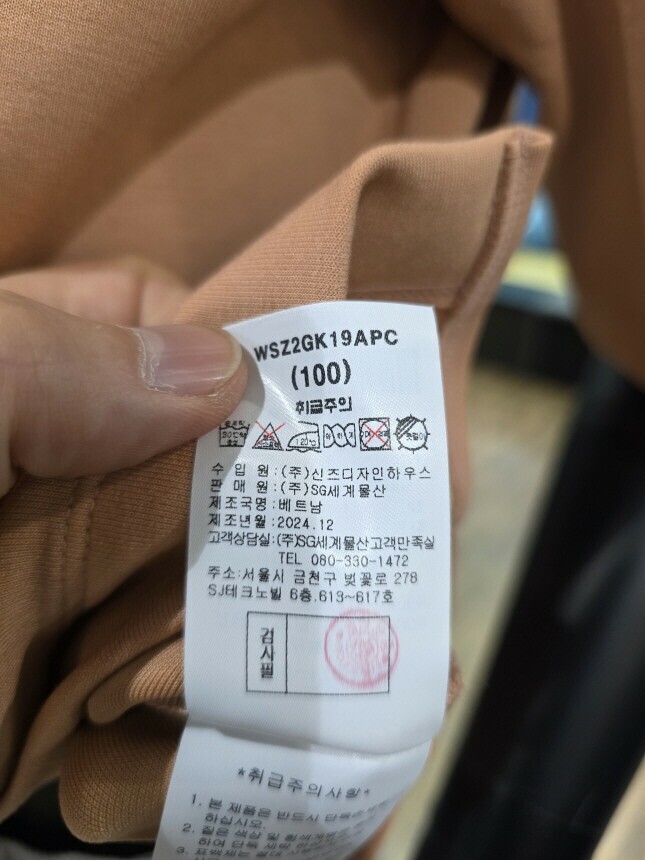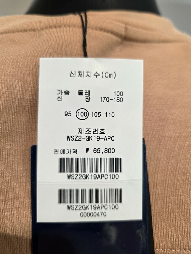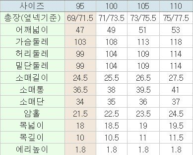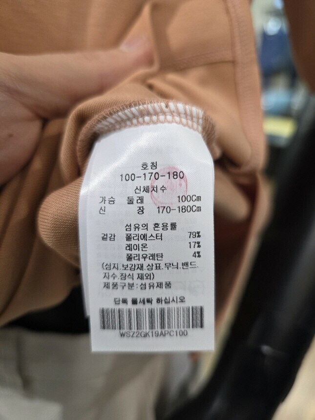 겉감 : 폴리에스터 79% , 레이온 17% , 폴리우레탄 4%